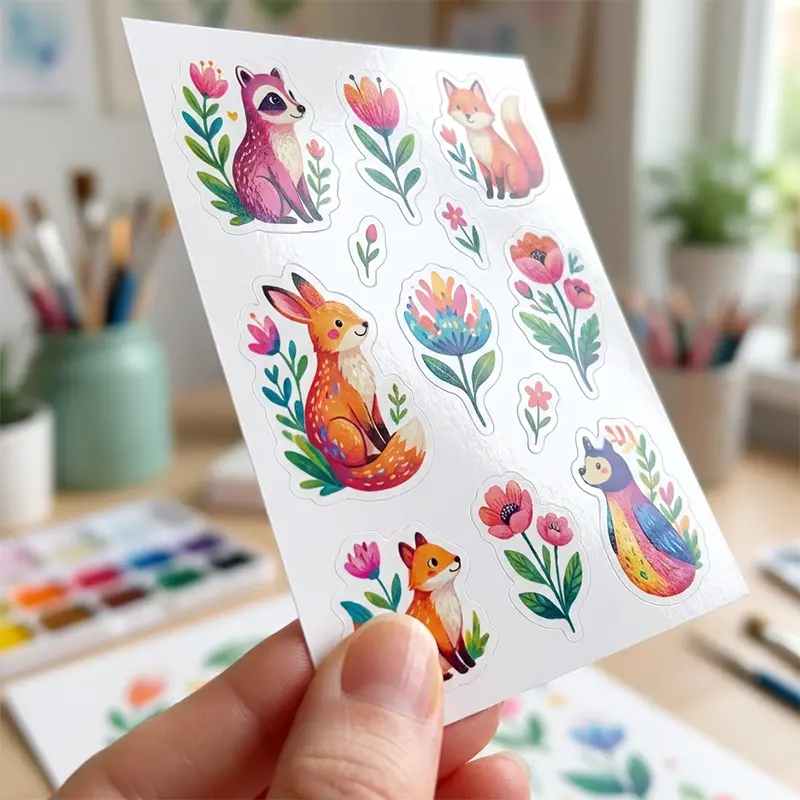 Stickerbogen sind als Sticker Sets mit vielen bunten Motiven in verschiedenen Größen und Formen sehr beliebt. Aber auch als Beilage bei Kinder-, Bastel- oder Schulbüchern – oder gar als Logobogen mit Firmenlogos in verschiedenen Größen – sind sie sehr gefragt. Statt einem einzigen Aufkleber in einer Form und einem Format, hat man alle Freiheiten mit einer Vielzahl von Motiven, die in einer beliebigen Form angestanzt bzw. konturgeschnitten sind. Auf Wunsch kann auch das rückseitige Trägerpapier mit zusätzlichen Informationen bedruckt werden.