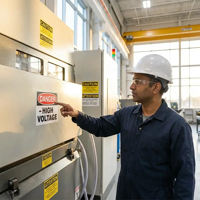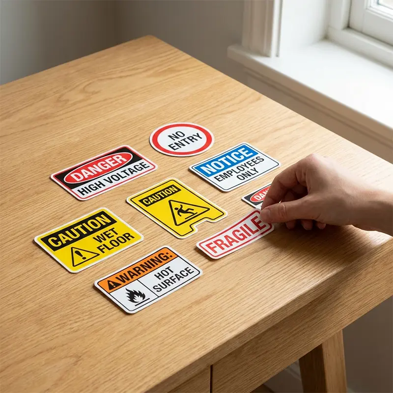 Aufkleber mit Sicherheitszeichen oder Warnhinweisen kommen in vielen unterschiedlichen Anwendungsbereichen zum Einsatz. Sie sind unentbehrliche Helfer und oft gesetzlich vorgeschriebene Mittel für die Unfallverhütung und Erhaltung der Gesundheit. Warnhinweise und Sicherheitszeichen informieren über bestimmte Gefahren, wie z.B. Hochspannung, Laserstrahlen, ätzende oder giftige Stoffe, Quetsch- bzw. Verletzungsgefahr. Bei gefährlichen Anlagen ist es wichtig, dass bestimmte Verhaltensweisen unterlassen werden, damit Unfälle vermieden werden. Hier kommen Verbotszeichen zum Einsatz. In anderen Bereichen ist ein bestimmtes Verhalten notwendig, um gesundheitsschädliche Folgen auszuschließen. Dazu gehört z.B. das Tragen von spezieller Schutzkleidung wie Schutzhelm, Gehörschutz oder Atemschutzmaske.